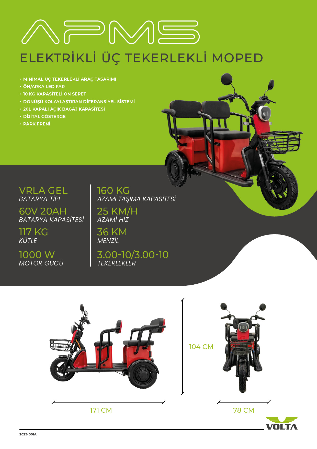 APM5; yolları, sevdikleriniz ile birlikte kolayca aşmanıza yardımcı olur. APM5 ile her zaman bir kişiye daha yer vardır. Güçlü motoru sayesinde; her engeli kolaylıkla aşar. Size sadece yolun keyfini çıkarmak kalır. Modern tasarımlı APM5 ile gözleri üzerinize çekmeye hazır mısın?